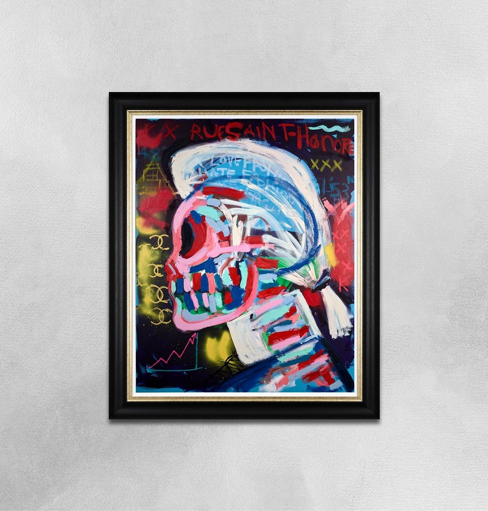 Bradley Theodore is a global force in contemporary art, whose work seamlessly blends high fashion, history, and street culture into something uniquely his own. His vibrant, daring depictions of iconic figures from Anna Wintour and Karl Lagerfeld to Frida Kahlo or Queen Elizabeth II are instantly recognisable; with his signature bold, chromatic brushwork, he gives their famous faces a fresh, edgy reimagining, striping them down to their ‘bare bones’, as he seeks to reveal the humanity beneath the public personas.
