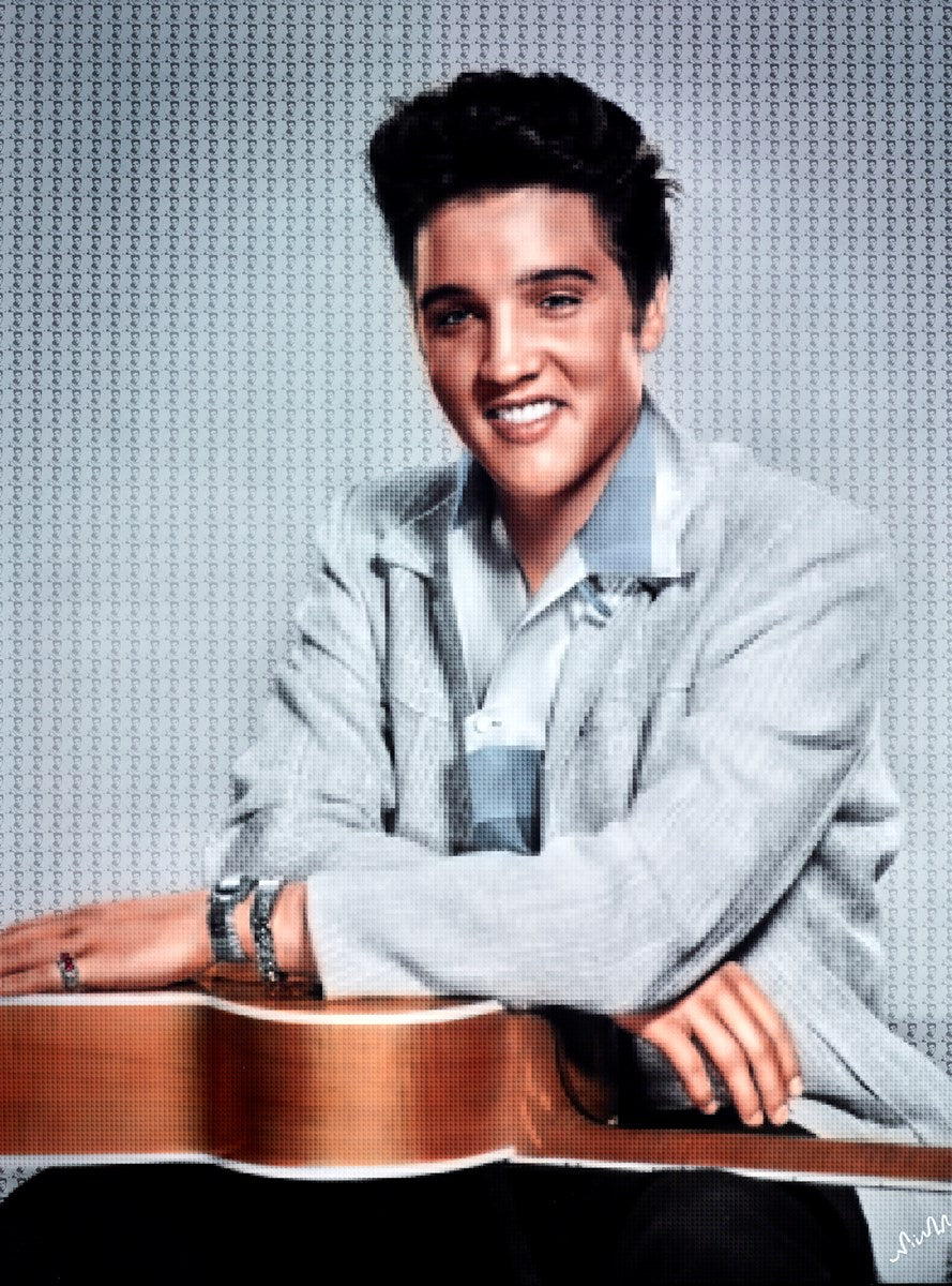 Nick’s creative process is both playful and complex, and informs the entire message of each powerful portrait. Once he has chosen an image to work with, he will manipulate it using a pixilation process, this is a technique that requires vigilant control over the placement for each individual pixel (of which there are hundreds for each image).