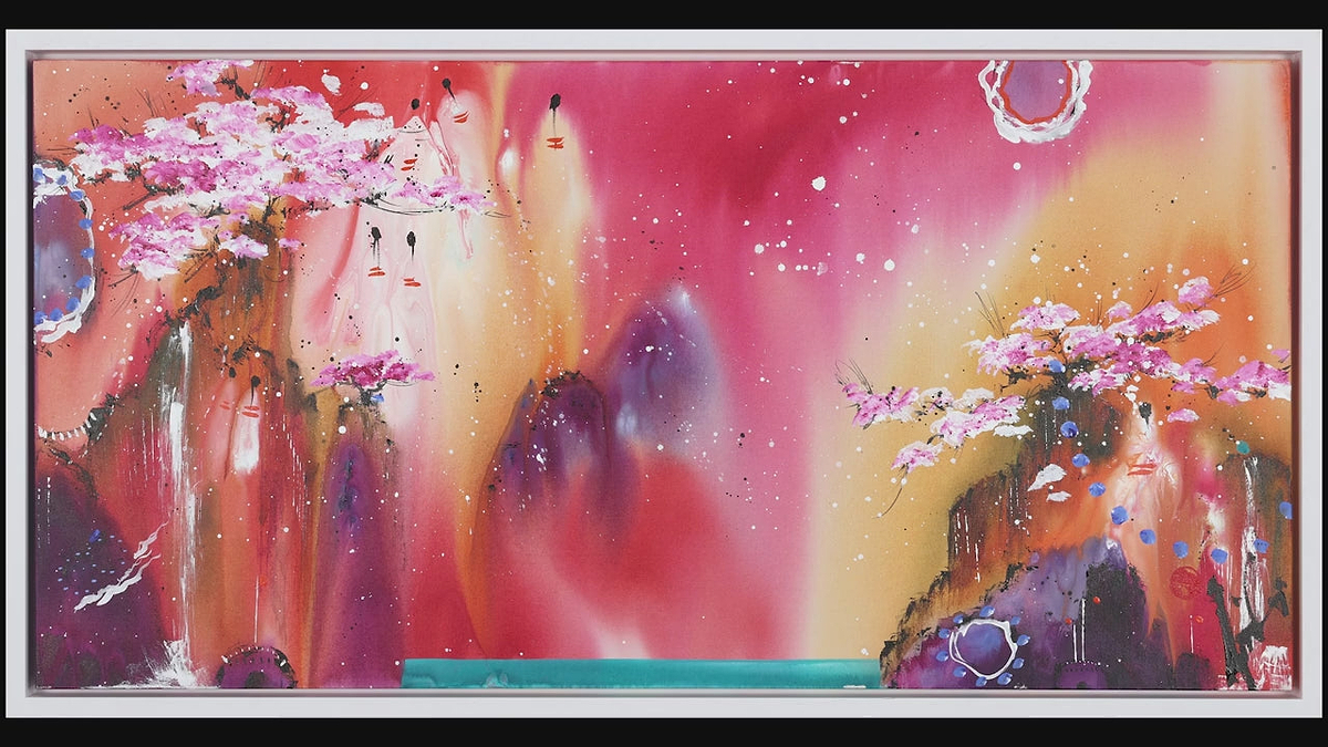 Her works also incorporate a range of materials, such as acrylics, watercolors, pastels, and collage elements, which add a dynamic and tactile quality to her pieces. Overall, Akiyama's style is both elegant and expressive, and her works often evoke a sense of joy and wonder in those who view them.